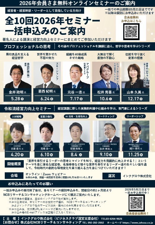 NCBリサーチ&コンサルティングでは会員さま無料オンライン講演会・セミナーを開催しております。
